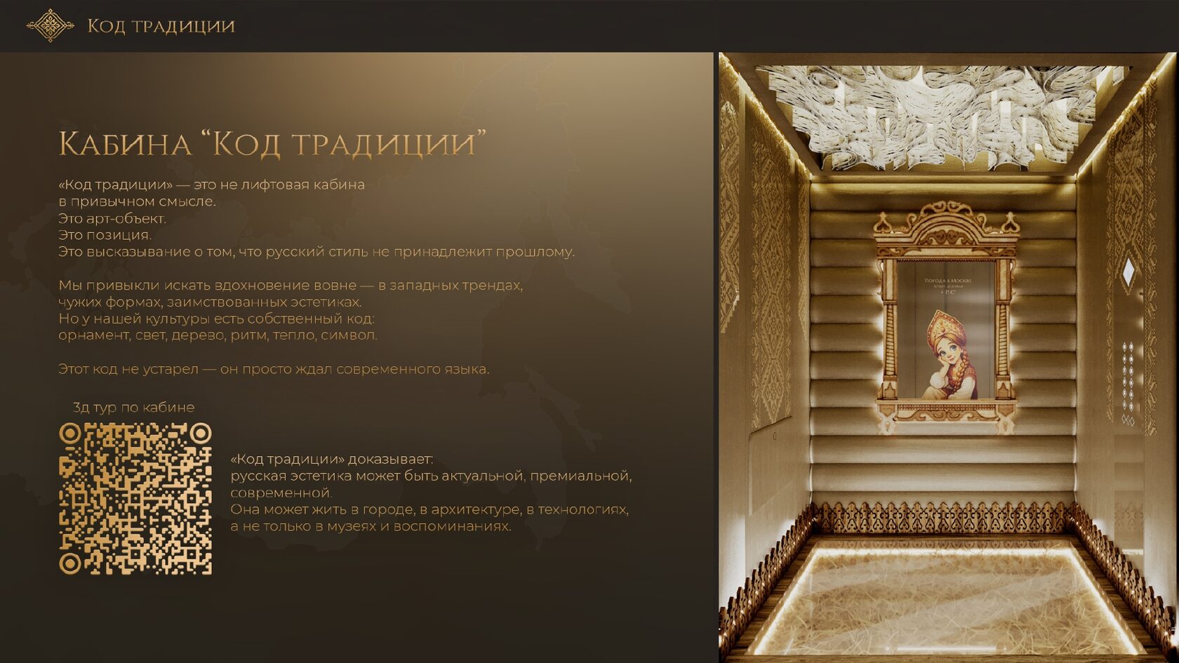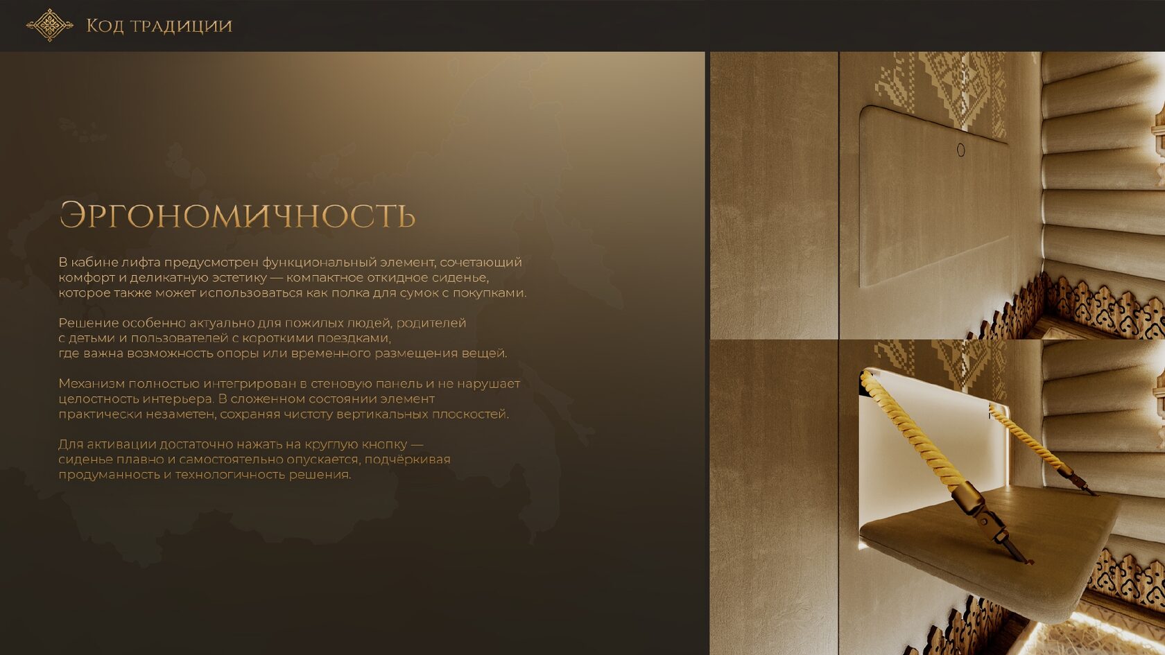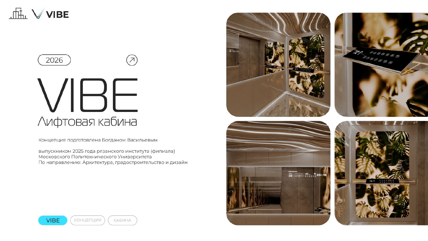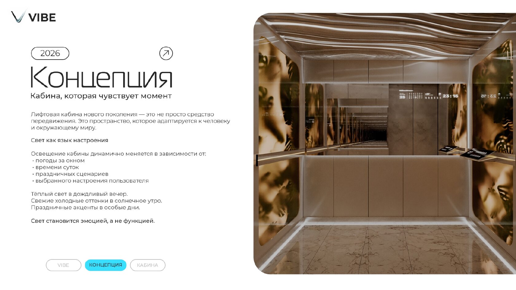 Итог: Ваша работа должна представить не просто лифтовую кабину, а комфортное, умное и ответственное пространство будущего, отвечающее самым актуальным запросам пользователей и планеты.